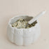 Serve in seasonal style with our White Pumpkin Ceramic Bowl and coordinating knife. Shaped like a charming white pumpkin with a glossy finish, this bowl is perfect for dips, spreads, or small treats. The included matching spreader makes it as functional as it is festive—an ideal addition to your fall gatherings or Thanksgiving table.