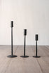 These metal Black Slim Candlesticks are the perfect pairing for any display. Their minimalist look lends well to all decor styles and seasons. Mix and mingle the different heights for added interest and dimension.