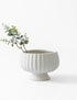 Timeless & trendy in a clean matte neutral hue, the Sonata Compote is a stunning accent piece for retail florists, wedding & event design, or home decor. Featuring smooth vertical ribbing from top to bottom & a flared foot, this chic vessel with its soft white finish is ideal for a low-profile centerpiece or displayed on a layered tablescape.