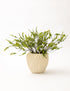 This sand finish stoneware pleated planter is a lovely and versatile piece that can enhance any space. The planter features a round shape with a sand finish and white speckles, giving it a natural and earthy look.