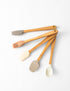 This Bamboo and Silicone Spatula Set is a testament to sustainable design and culinary versatility. The five-piece set, each measuring 8.5 inches long and 2 inches wide, is thoughtfully crafted with a bamboo handle and a silicone head, offering a balance of durability and gentle flexibility. The neutral color palette ensures that these utensils will harmonize with any kitchen decor, while their construction makes them a wise choice for those seeking to reduce their environmental footprint.