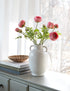 This Ceramic White Vase with looped handles is the perfect transitional vase for any season and any style of home. Style it with your favorite florals or leave it empty on a shelf for an architectural decor feature.  The white gloss of the vase is not only striking but adds a subtle nod of sophistication to this understated elegant vase.